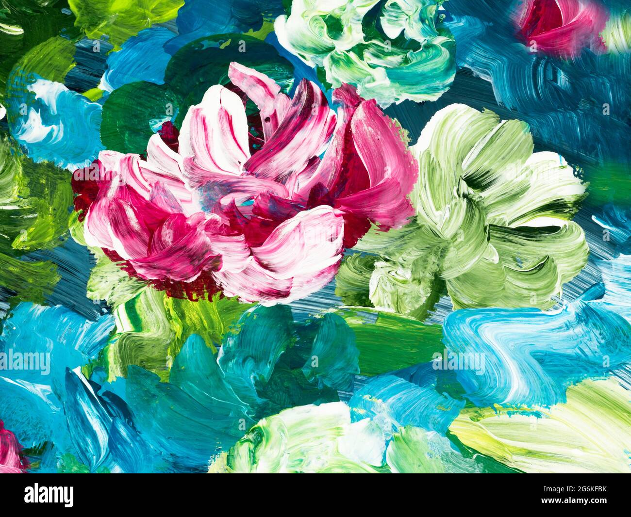 Pink Flowers Abstract Painting Original Hand Drawn Impressionism Style Color Texture Brushstrokes Of Paint Art Background Modern Art Contemp Stock Photo Alamy